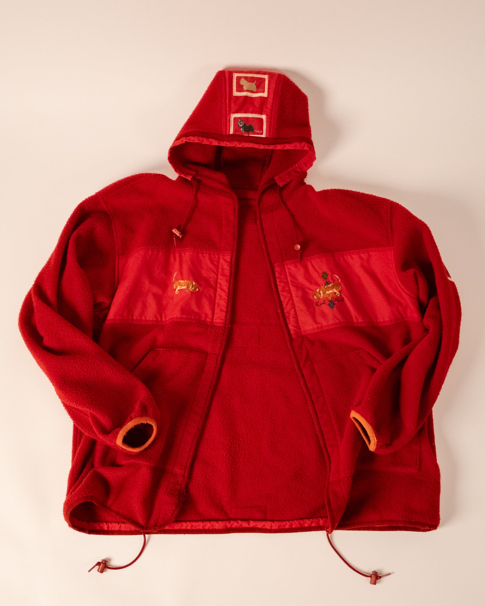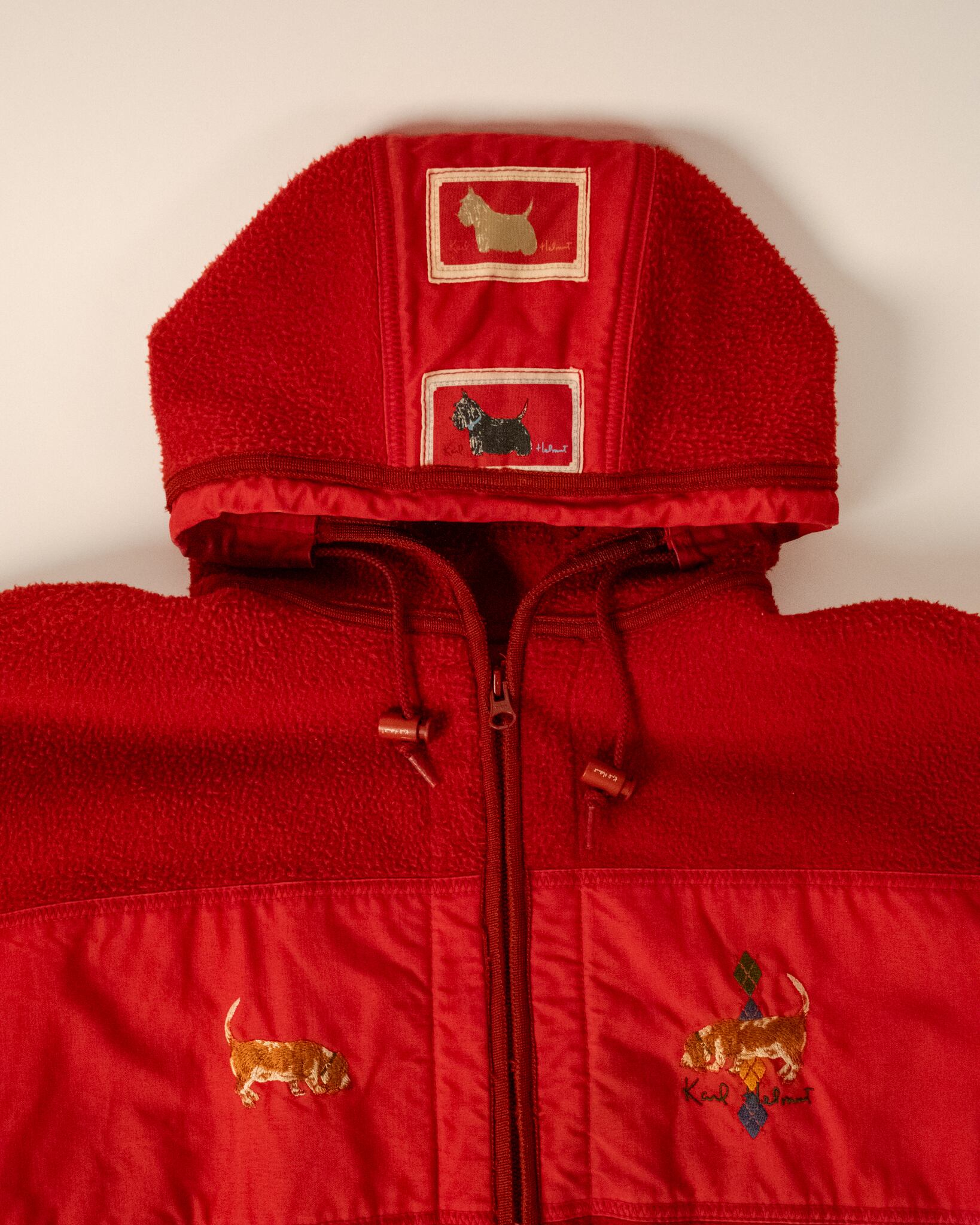 Karl Helmut Dog Embroidery Fleece Hooded Jacket