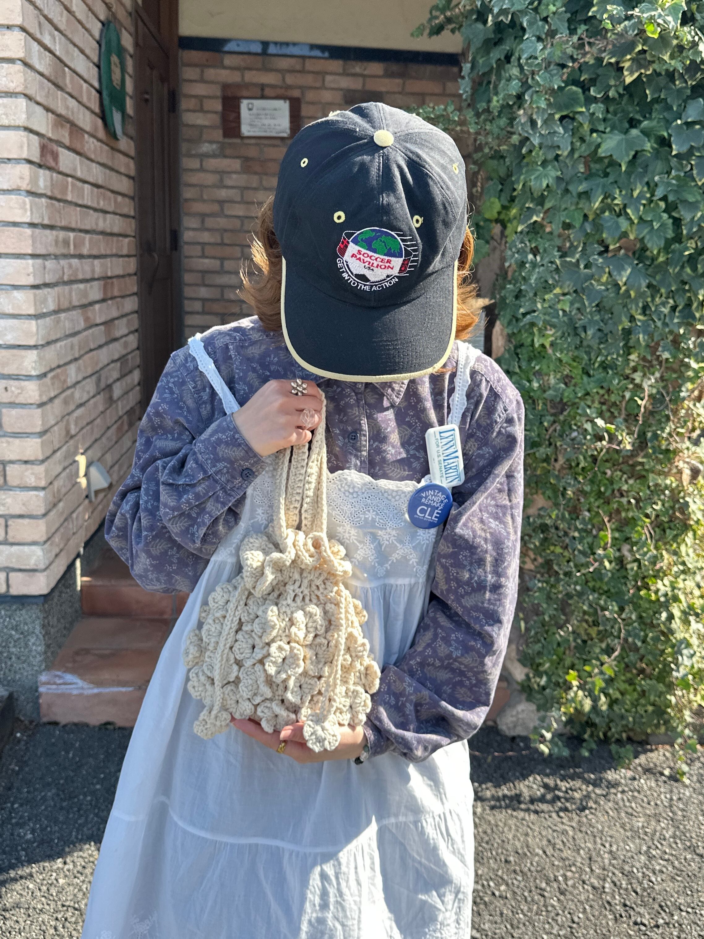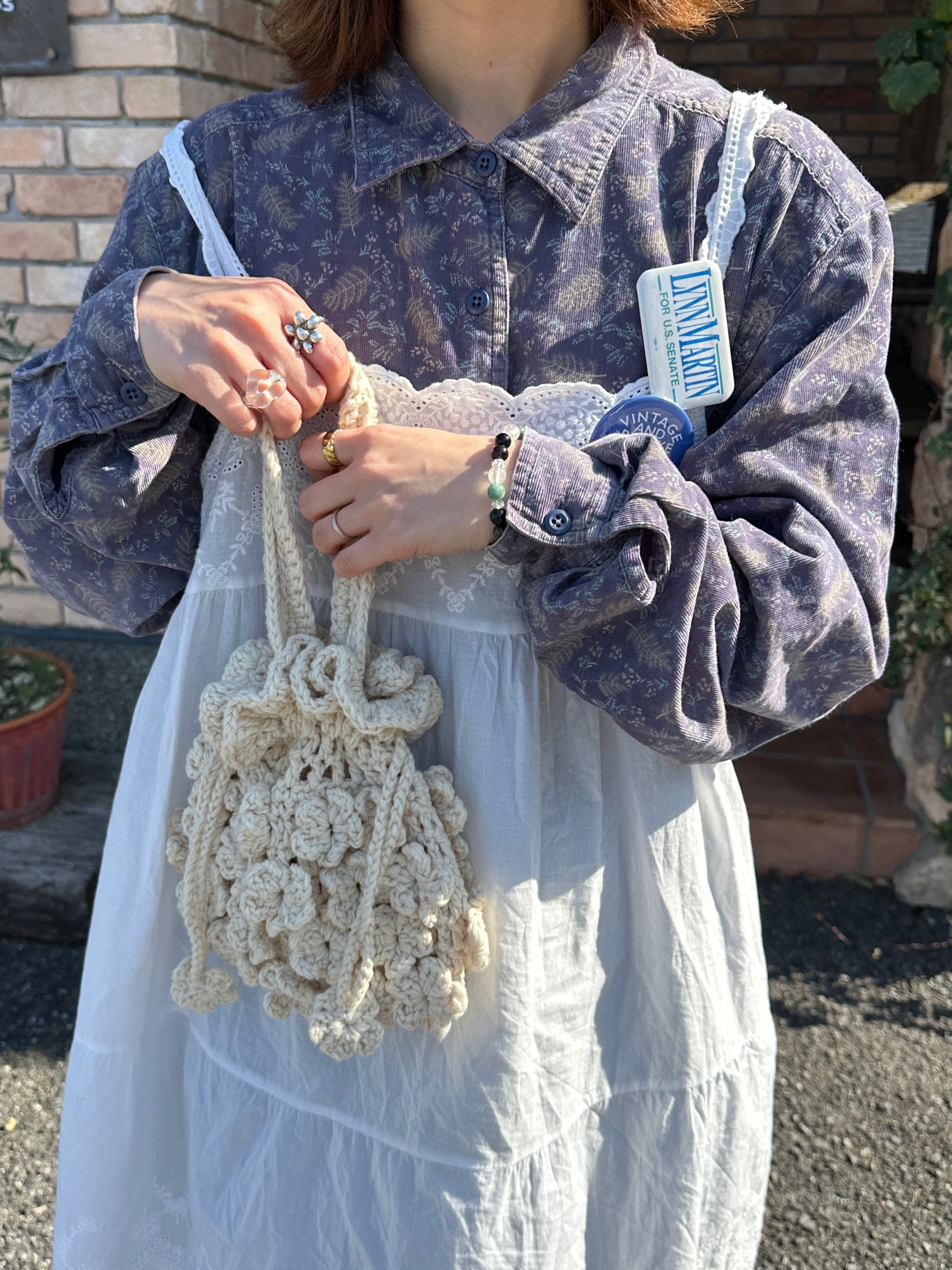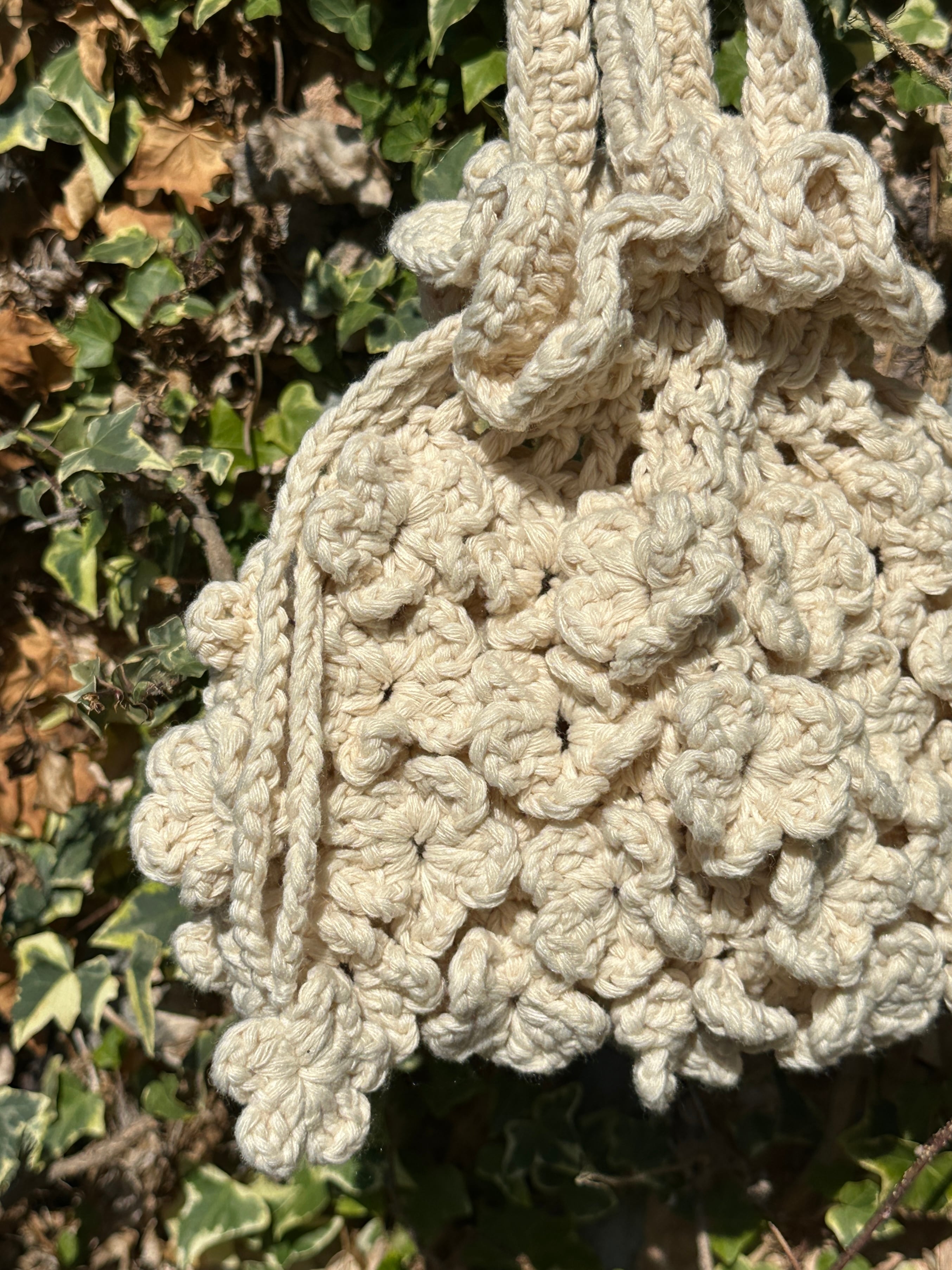 丁寧に1つずつ手編みで編み上げて頂いたお花の巾着バッグです。